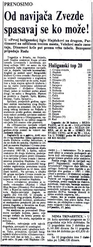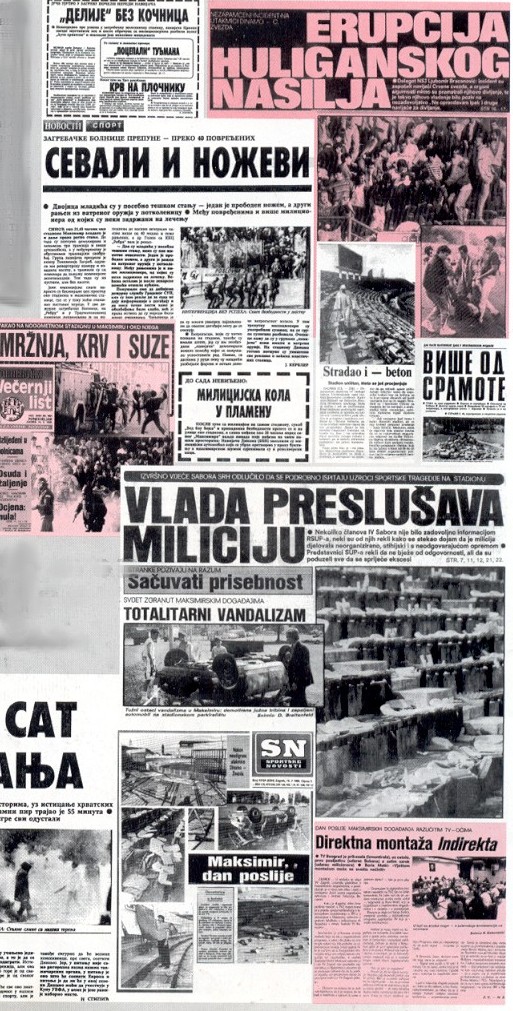 Erupcija huliganskog nasilja, novinski izvestaji i slike u Srbiji i Hrvatskoj, posle utakmice Dinamo - Crvena Zvezda u Zagrebu, koji je oznacio raspad SFRJ